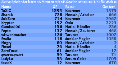 Ich möchte an dieser Stelle einfach mal feststellen, dass deutlich mehr der aktiven Spieler Serum-Geist sind und dass Arbeiter als Rasse so unbeliebt wie Kämpfer ist. Die Ausnahme bildet hier Welt 1, aber anhand von Welt 1 sollen wir ja nicht balancen.